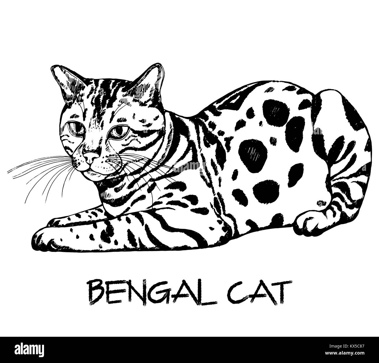 Disegnato A Mano Stile Sketch Gatto Bengala Illustrazione Di Vettore Isolato Su Sfondo Bianco Immagine E Vettoriale Alamy
